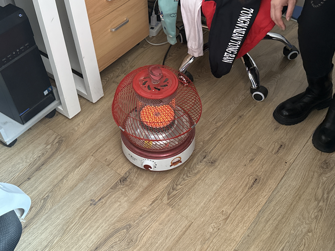 4.老人休息室使用大功率电烤火炉取暖,电气线路敷设不规范。