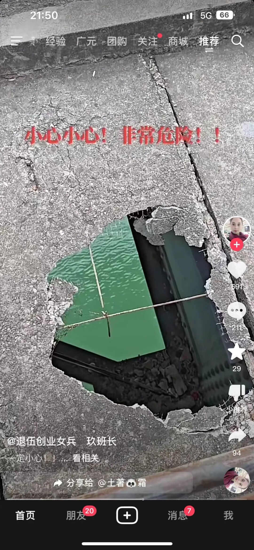 “小心小心,非常危险!老城铁桥人行道上有安全隐患。”2月16日晚,市民王女士在抖音平台发布老城铁桥有安全隐患的视频,迅速引起了网友关注,该隐患也同步上传到了“广元安全隐患随手拍”系统。