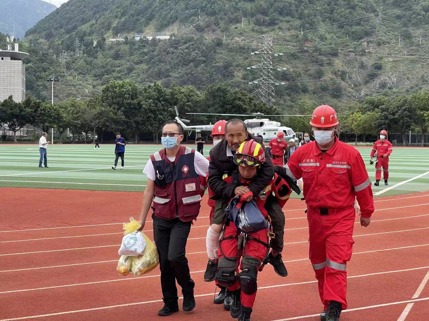 9月6日15时,广元市生产安全应急救援支队接前线指挥部命令,参加转运伤员任务,指战员们用抬、背等方式成功转运伤员12人。