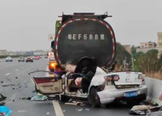 第三起事故。4时57分许,陈某亨驾驶粤G344B8号小型轿车经过事发路段时,因车辆失控碰撞停靠在应急车道内的重型半挂牵引车,造成车上陈某亨、陈某财、陈某富、陈某华当场死亡,两车损坏的道路交通事故。