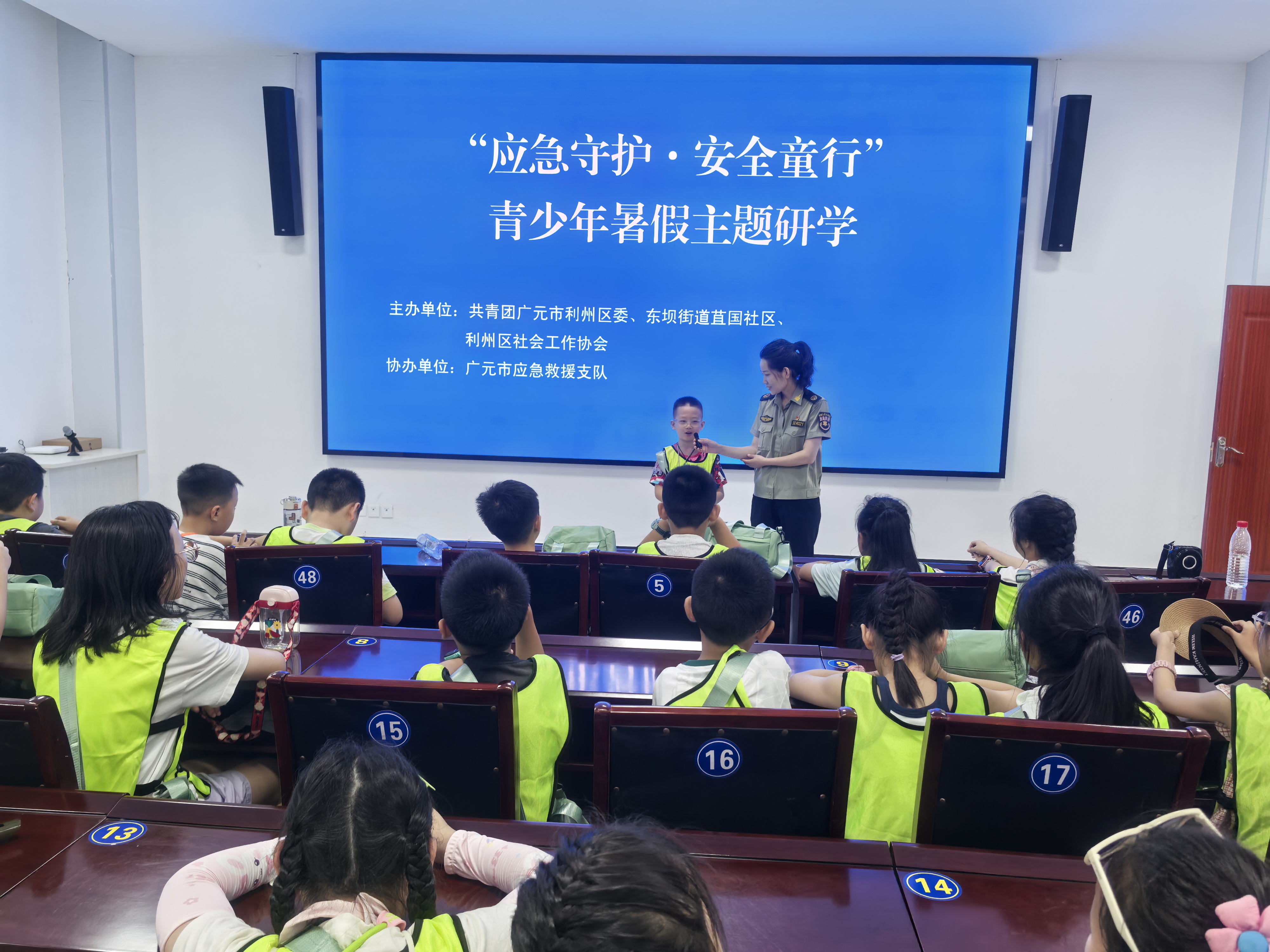 “按压深度要达到5-6厘米,频率保持每分钟100—120次……”7月15日,在省区域应急救援广元基地训练场上,33名青少年在广元市应急救援支队教官的指导下,围绕在心肺复苏模拟假人旁,认真练习心肺复苏急救技术。这场由共青团广元市委、共青团利州区委、苴国社区与利州区社会工作协会联合发起的“应急守护?安全童行”主题研学活动,让孩子们在沉浸式体验中揭开了应急救援的神秘面纱。
