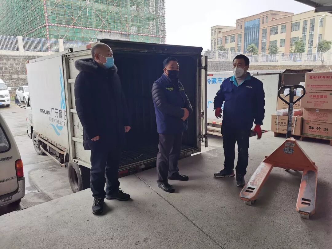 ▲2月1日,经开区应急管理局局长杨泉在科伦医药公司检查仓储物流情况