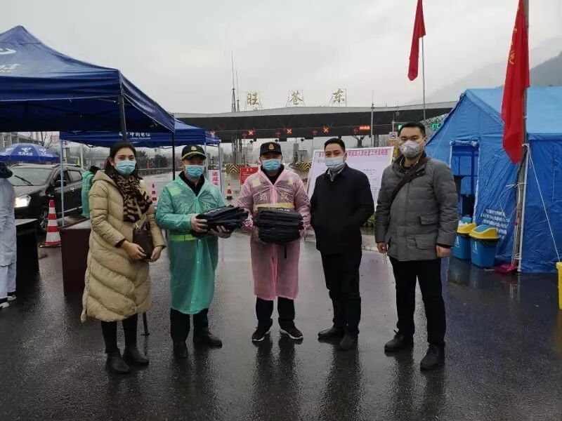 ▲1月31日,旺苍县应急管理局领导干部到旺苍县东出口检测点送雨衣、雨伞等物资