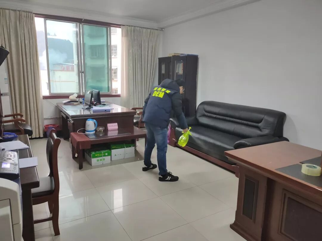 ▲2月1日,朝天区应急管理局开展办公区域消杀工作