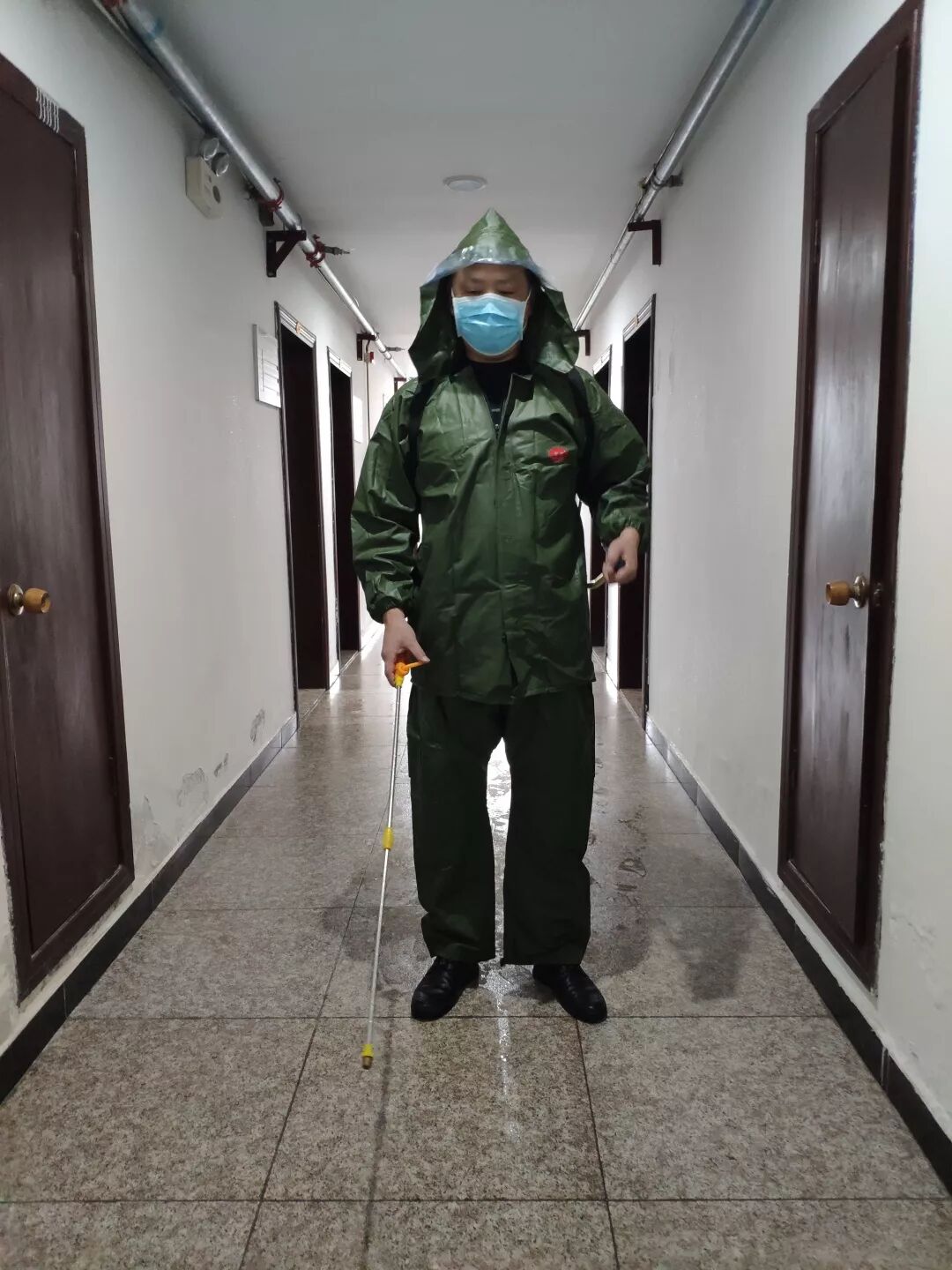 ▲2月1日,昭化区应急管理局干部对办公楼进行消毒