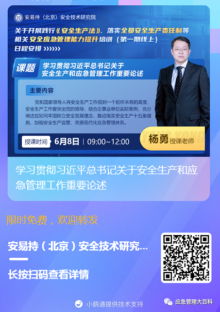 应广大学员建议,杨勇老师第一课《学习贯彻习近平总书记关于安全生产和应急管理工作重要论述》将限时免费对公众开放