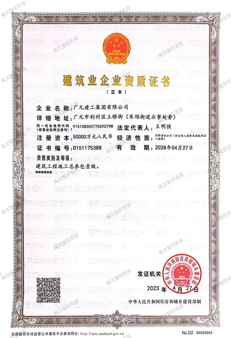 广元建工集团是一家集建筑工程、市政公用工程等施工总承包资质和地基基础工程等10个专业承包资质的国有施工企业,业务涵盖施工总承包,商品混凝土生产、销售,工程设备和汽车租赁,市政基础设施维修维护,装配式部品部件生产、销售,消防设施工程施工等六大业务板块。自2018年组建以来,广元建工集团履行“传承千载匠心·缔造百年品质”的企业宗旨,积极对标对表先进的科学管理体系,以完整的施工总承包产业链和标准化的制度管理体系为保障,大胆寻求市场化发展之路,取得了优异成绩。