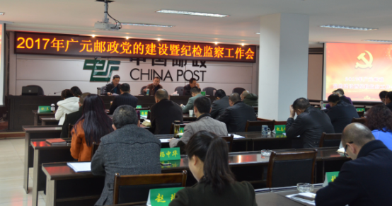 3月23日,广元市邮政分公司2017年党的建设暨纪检监察工作会在市公司四楼会议室召开。市公司领导班子和全体四级领导干部,各分公司支部书记、纪检委员以及全市邮政各基层党组织党务纪检干事共45人参加会议。