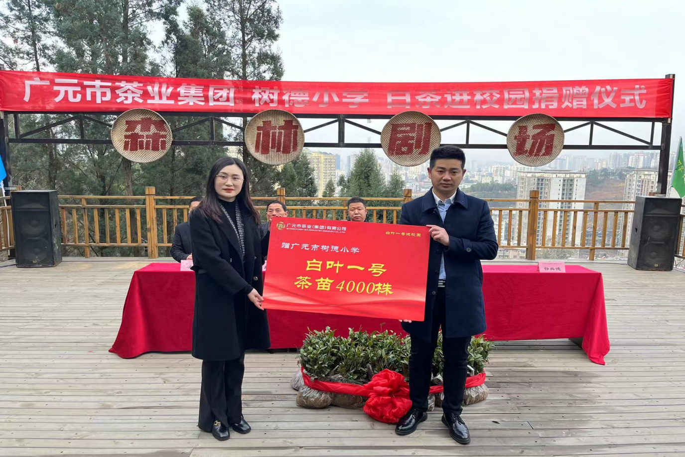 为弘扬中国传统茶文化,促进校企交流,3月上旬,广茶集团开展“白叶一号”茶进校园暨中小学劳动实践研究活动,并向树德小学捐赠了4000株“白叶一号”茶苗。