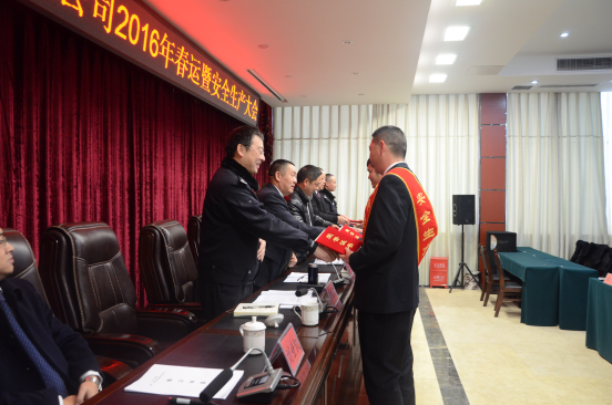 近日,市公交公司召开了2016年春运暨安全生产工作大会。市运管局执法支队支队长王海东同志,市交警支队副支队长朱文俊同志,市公交警察大队大队长陈思同志、副大队长王云同志,市交旅集团副总经理杨晓刚同志、安全营运部经理童建同志出席会议并发表讲话,市公交公司党政班子成员及各部门、单位负责同志,各运营路队队长及驾驶员,部分员工代表共计140余人参加会议。 会议首先由公司总经理助理李柯代表公司党委、行政作2015年安全生产工作总结,并安排部署2016年春运暨全年安全生产工作;其次,公司党委委员、常务副总经理刘世凯同志传达了近期全国、全省、全市安全生产电视电话大会精神。 会上,市运管局、市交警支队、市公交警察大队及市交旅集团的领导均就公司春运及全年安全生产工作作了重要讲话。会议还就2015年主要安全事故进行通报并对2015年度安全生产标兵、安全文明示范岗进行了表彰。