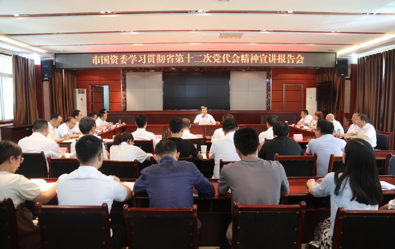 为庆祝建党101周年,喜迎党的二十大胜利召开,激励全市国资国企党员干部大力弘扬伟大建党精神,6月29日,市国资委举行省第十二次党代会精神宣讲会,市国资委党委书记、主任王彦结合学习贯彻省第十二次党代会精神开展了"七一"专题党课。市国资委机关全体党员干部、各市属国有企业负责人共40余人参加了宣讲会。