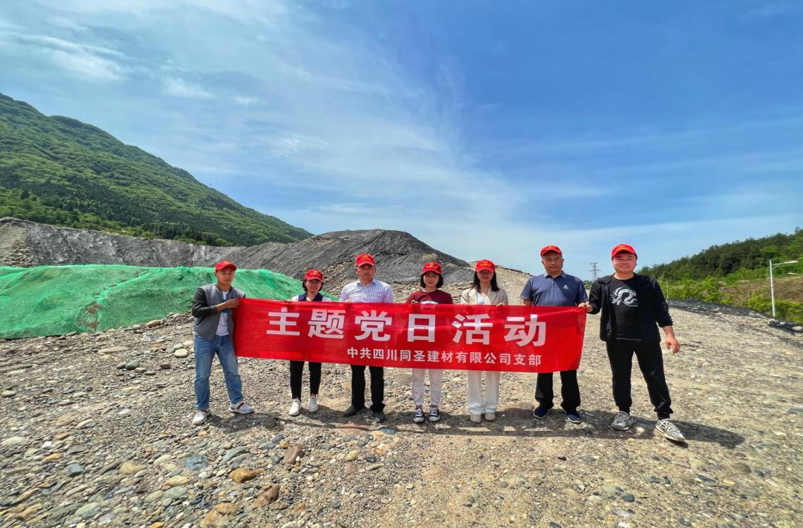 为进一步增强党员凝聚力,发挥党员的先锋模范作用,净化砂石项目周边环境, 4月26日,同圣建材党支部在剑阁兴能新材纱石原料堆场开展"建设绿色企业,践行绿色发展"主题党日活动,对砂石原料堆场进行防尘网压盖及周边卫生环境清理。