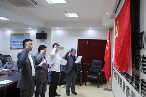 9月30日上午,市金融服务集团3名新党员面对鲜红的党旗举起右手,庄严宣誓,发出了誓为共产主义奋斗终身的誓言。3名新党员响亮的声音表明了他们的决心,铿锵的誓言坚定了他们的信念。 党员宣誓结束后,集团公司支部书记李仕平同志对3名新党员提出了“三希望”,即加强党性修养,不断提高素质;强化党员意识,牢记党的宗旨;立足本职岗位,发挥模范作用。