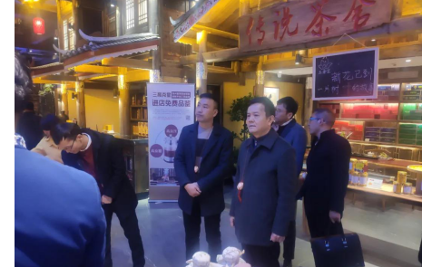 覃敏一行参观了“西江传说”特色餐饮城的建筑装饰风貌,古法酿造工艺、生产生活场景等苗侗民族文化展示和“传说酒馆”文创酒品,就“西江传说”餐饮品牌培育以及运营管理进行了详细考察。