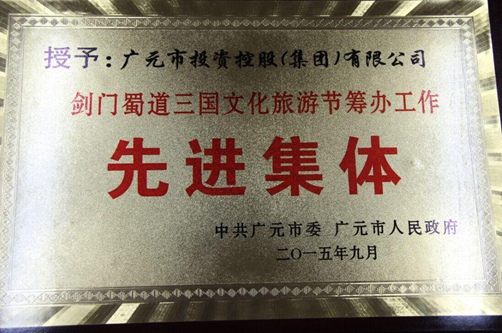 广元市委、市政府近期对在2015年剑门蜀道三国文化旅游节筹办工作中表现突出的单位予以表彰,市投资集团荣获先进集体称号。