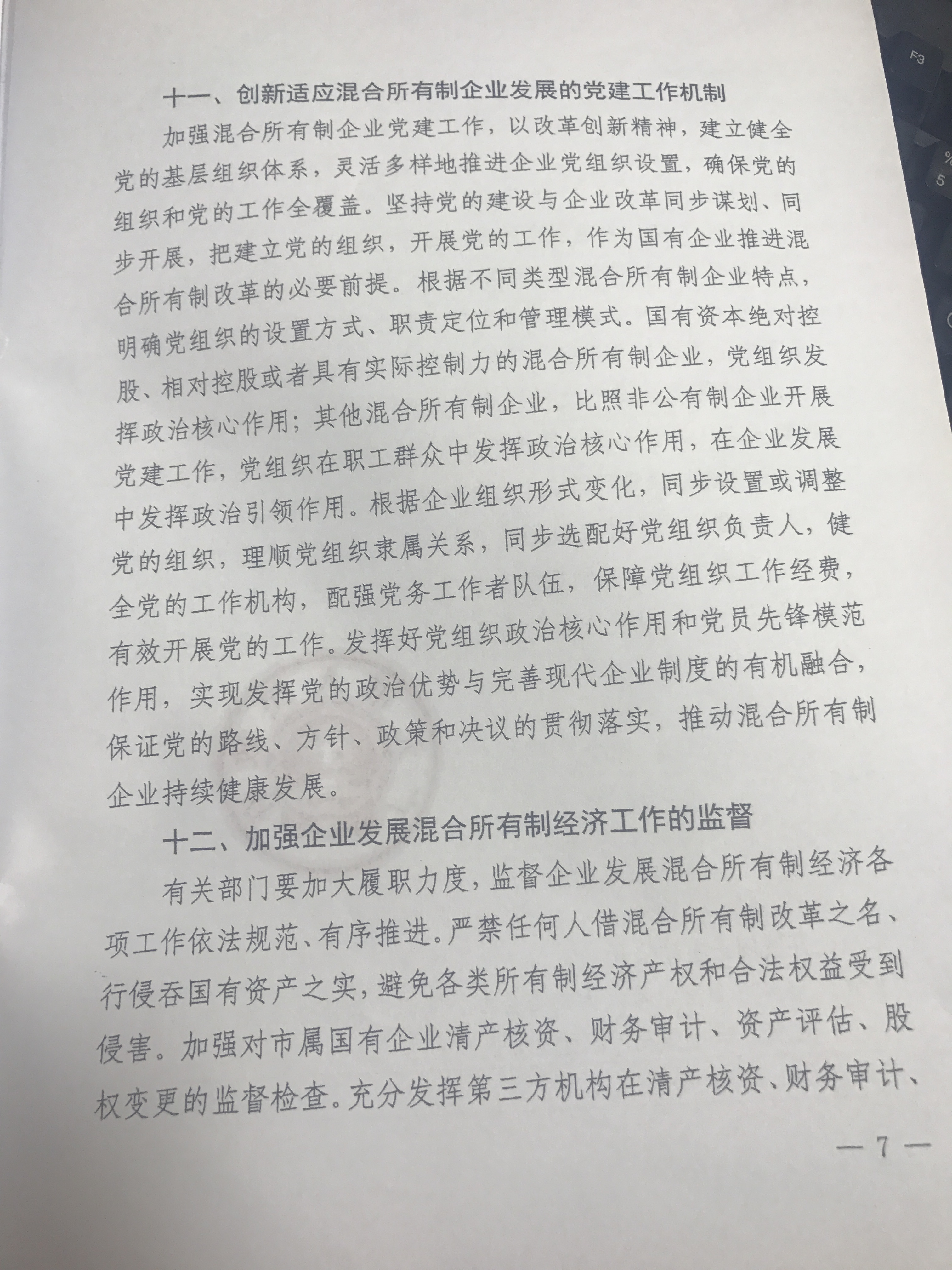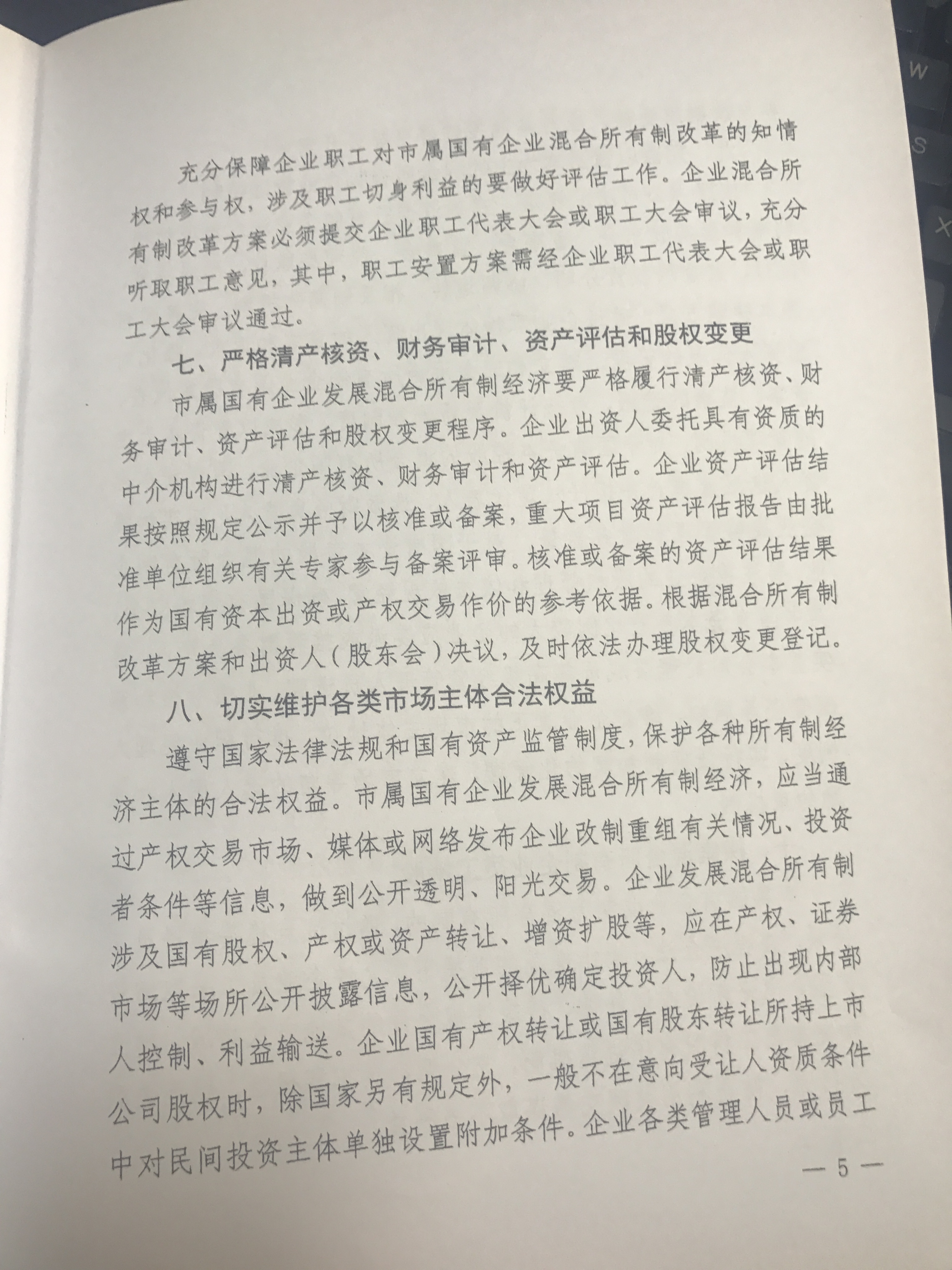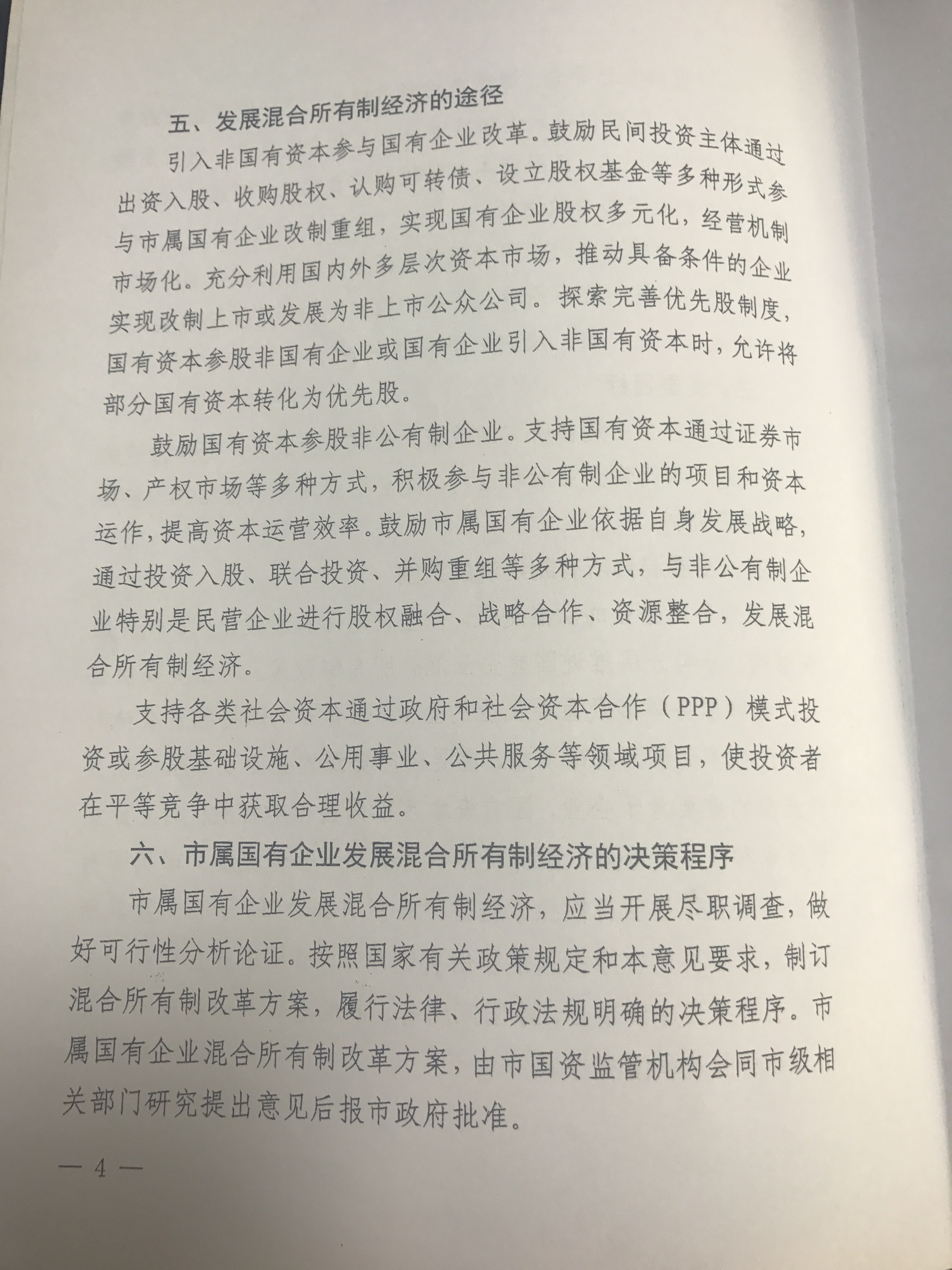 关于推进市属国有企业发展混合所有制经济的实施意见