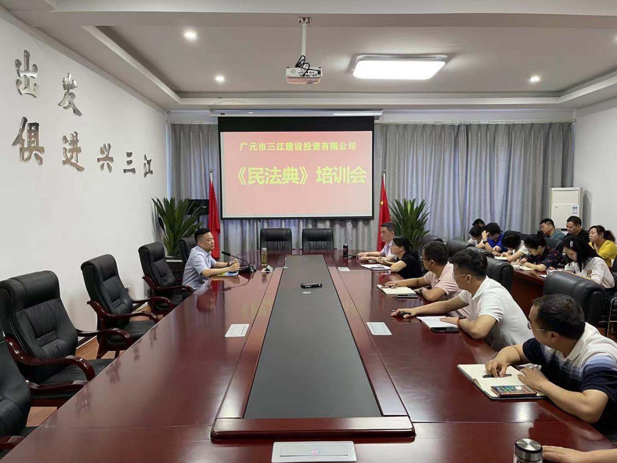 5月28日下午,市三江建投公司邀请四川天称律师事务所王海臣律师进行了民法典讲授,会前公司党支部书记、董事长马长风做了培训动员讲话,公司全体人员参加学习。