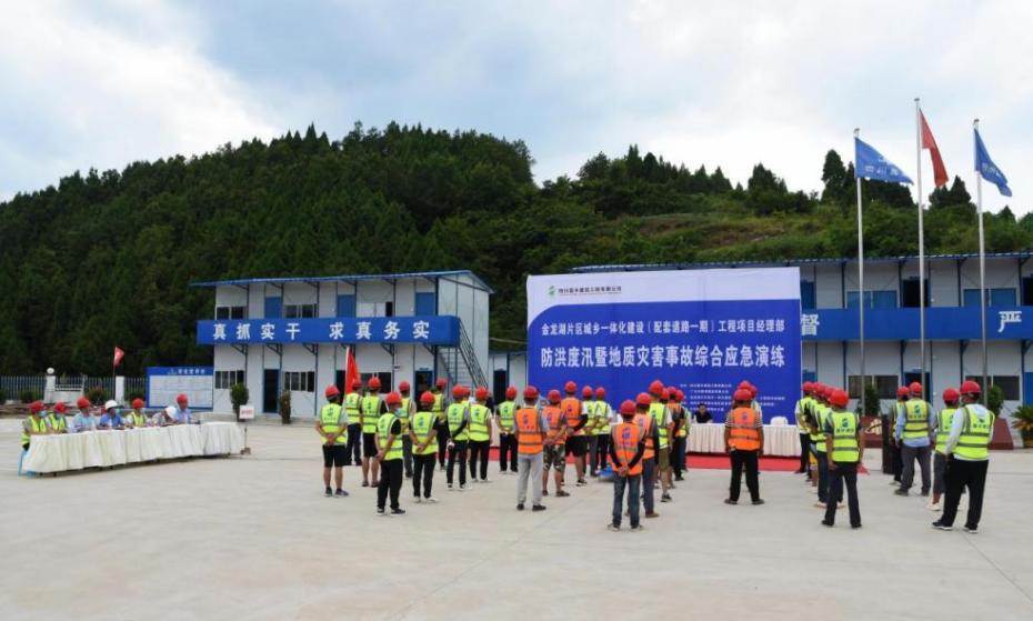 为快速、有效、有序处置雨季汛期事故及地质灾害,7月15日,由四川嘉丰建筑工程有限公司、广元新晟建设有限公司联合在金龙湖片区城乡一体化建设(配套道路一期)工程项目经理部组织进行防洪度汛暨地质灾害事故综合应急演练。