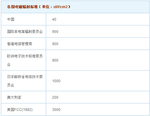 事实上,我国对于在居民区内安装基站有着严格的规定,基站的安装都需要经过环保部门的审批和验收。根据环保部门目前执行的GB8702-88标准,公众场所的辐射功率密度上限为40uW/cm2,远小于其它国家的标准,可谓相当严格。