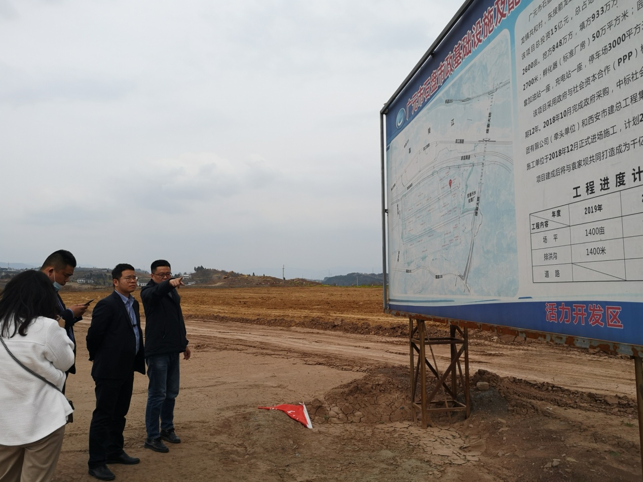 3月2日下午,考察组实地考察了石盘工业园。广元经开区管委会副主任朱刚接洽并与考察组进行交流,市经济合作局石雨维、广元经开区经合局副局长赵彬丞陪同考察。