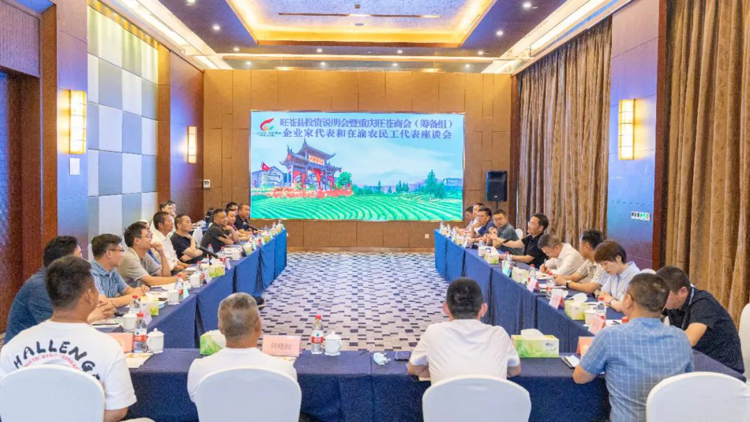 在渝期间,唐文辉一行出席了旺苍投资说明会暨重庆旺苍商会(筹备组)企业家代表和在渝新产业工人代表座谈会,旺苍籍企业家代表、新产业工人代表在畅叙乡情的同时推介旺苍优势资源和项目,加快推进重庆旺苍商会成立。