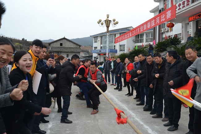 为了丰富镇全体干部职工文化体育生活,汇聚内部的团结力量,增强团队合作精神,1月15日上午,在盘龙镇政府院内举办了2019年迎新春拔河比赛,参赛队伍共有22队,分别由镇机关、盘龙派出所、各村(社区)等人员组成共300余人。