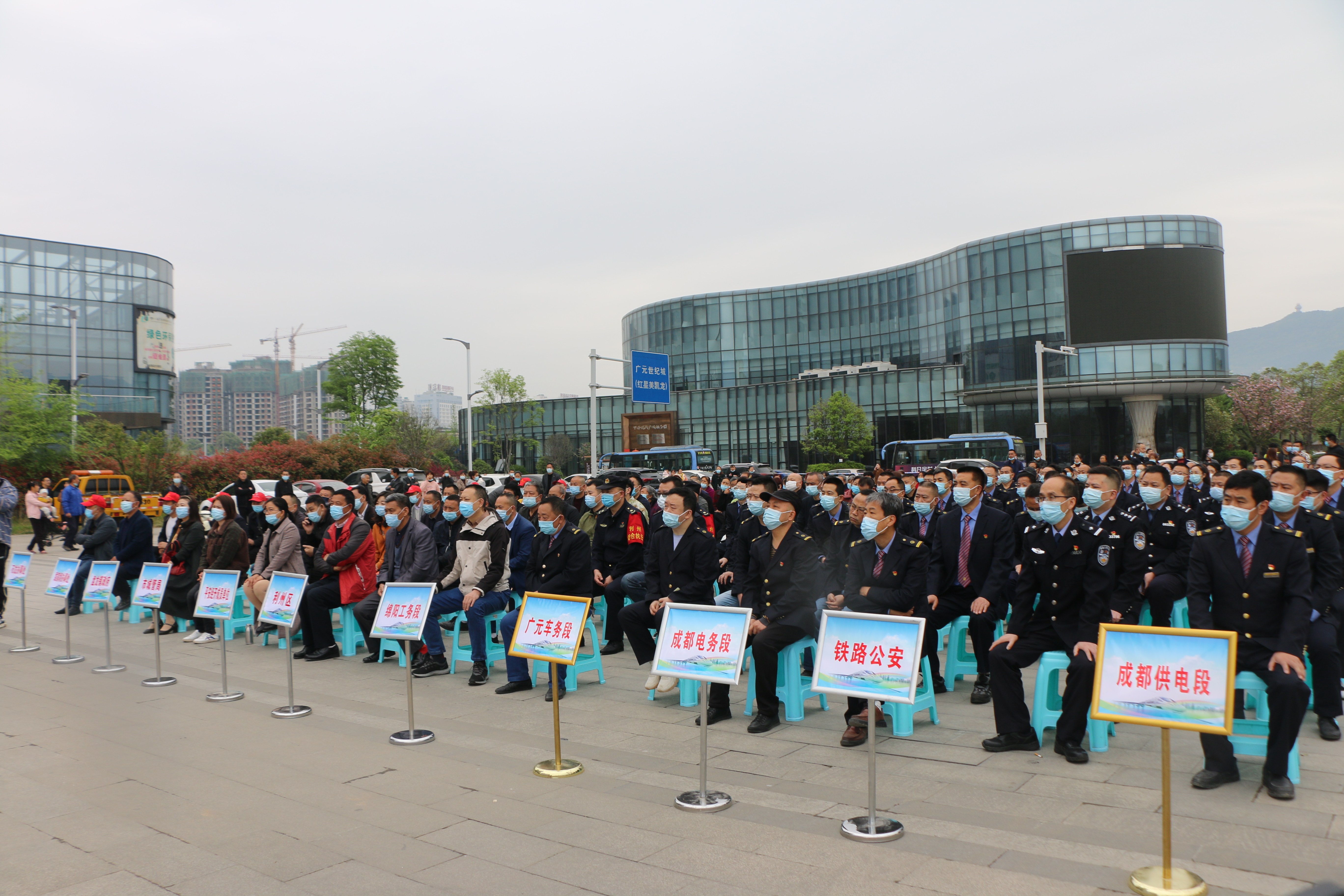 3月29日,广元市打击铁”路沿线非法施工、非法耕种违法行为启动仪式在经开区世纪城文化广场举行。管委会三级调研员王荣东,平安广元护铁办苏辅军,市城管局、绵阳工务段、成都供电段、广元铁路派出所及平安经开区护路联防组成员单位负责人、护路队员,铁路沿线群众代表等150余人参加了此次活动,活动由区铁路护路联防组副组长、公安分局副局长黎峻志主持。