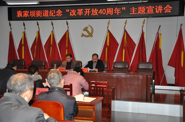 12月27日,袁家坝街道举办了庆祝“改革开放40周年”宣讲会,区党工委副书记范为民同志进行了主题宣讲。