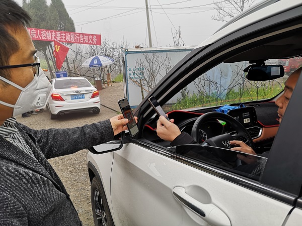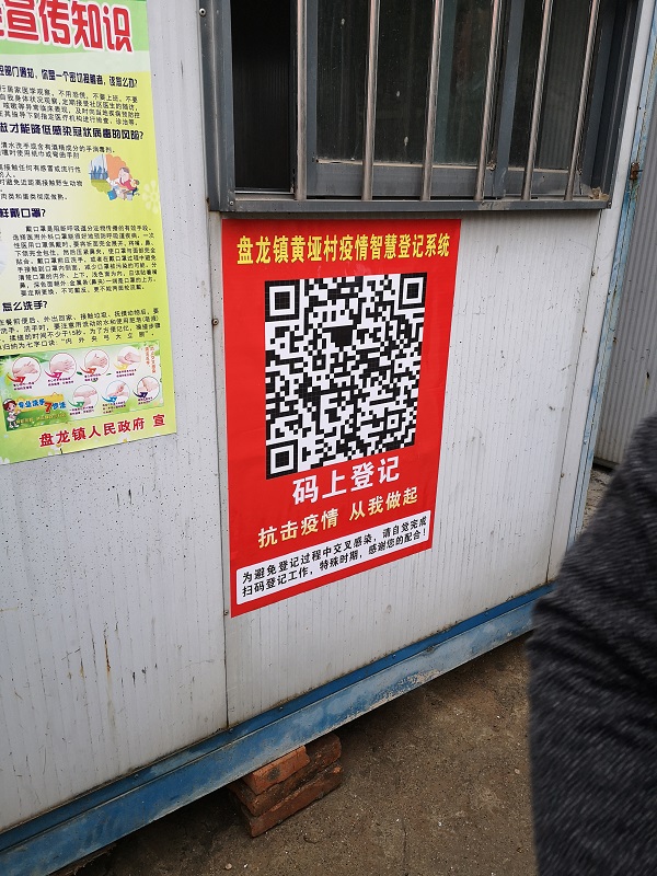 “同志,请您配合扫一下二维码完成疫情监测登记”,2月5日清早,盘龙镇“五爱—黄垭村”疫情监测点挂上了醒目的“疫情智慧登记系统”二维码。