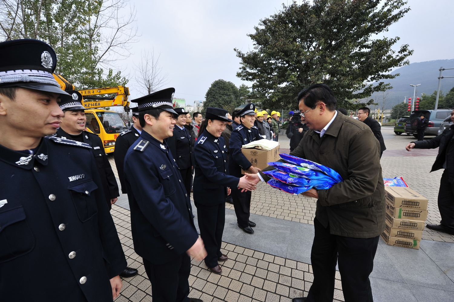1月13日下午,市政府副市长冯安富在市规划建设和住房局局长宋明强陪同下,代表市委、市政府对我市城监支队及路灯所职工进行了慰问,为他们送去慰问品和新春的祝福。
