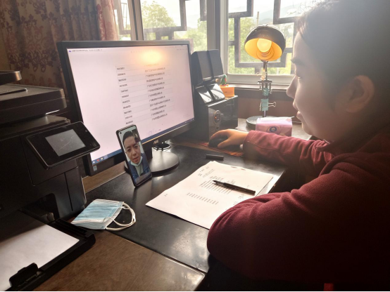 图为:市住房中心工作人员居家办公期间视频连线接洽工作