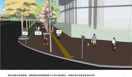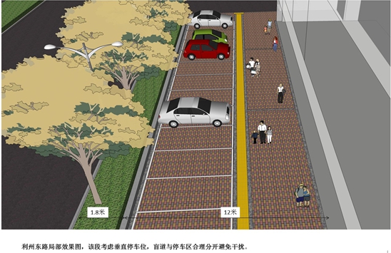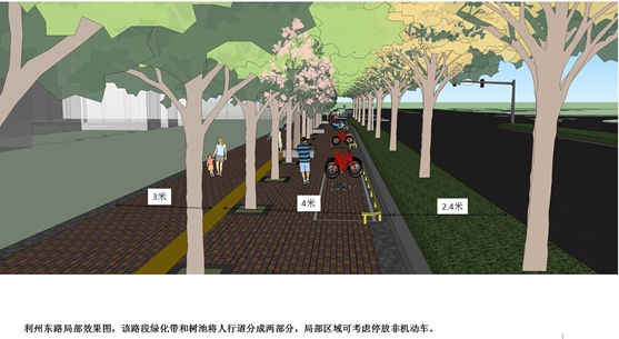 (一)利州东路人行道改造:总长约7838米,人行道宽度4.5米到15米的范围(其中4.5到6米道路,建议不设置停车位,6米到15米道路可部分设置机动车和非机动车停车区域)。