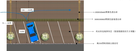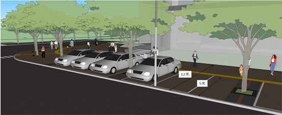 (五)北京路人行道改造:总长度约1552米,改区域道路宽度主要5米到12米,其中在足够区域设置非机动停车与机动车停车。