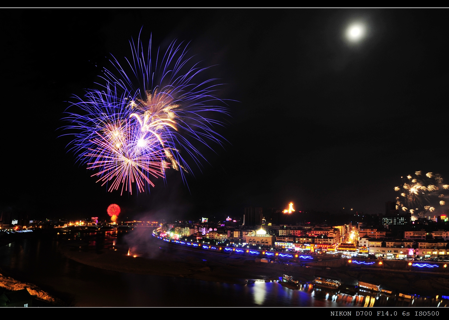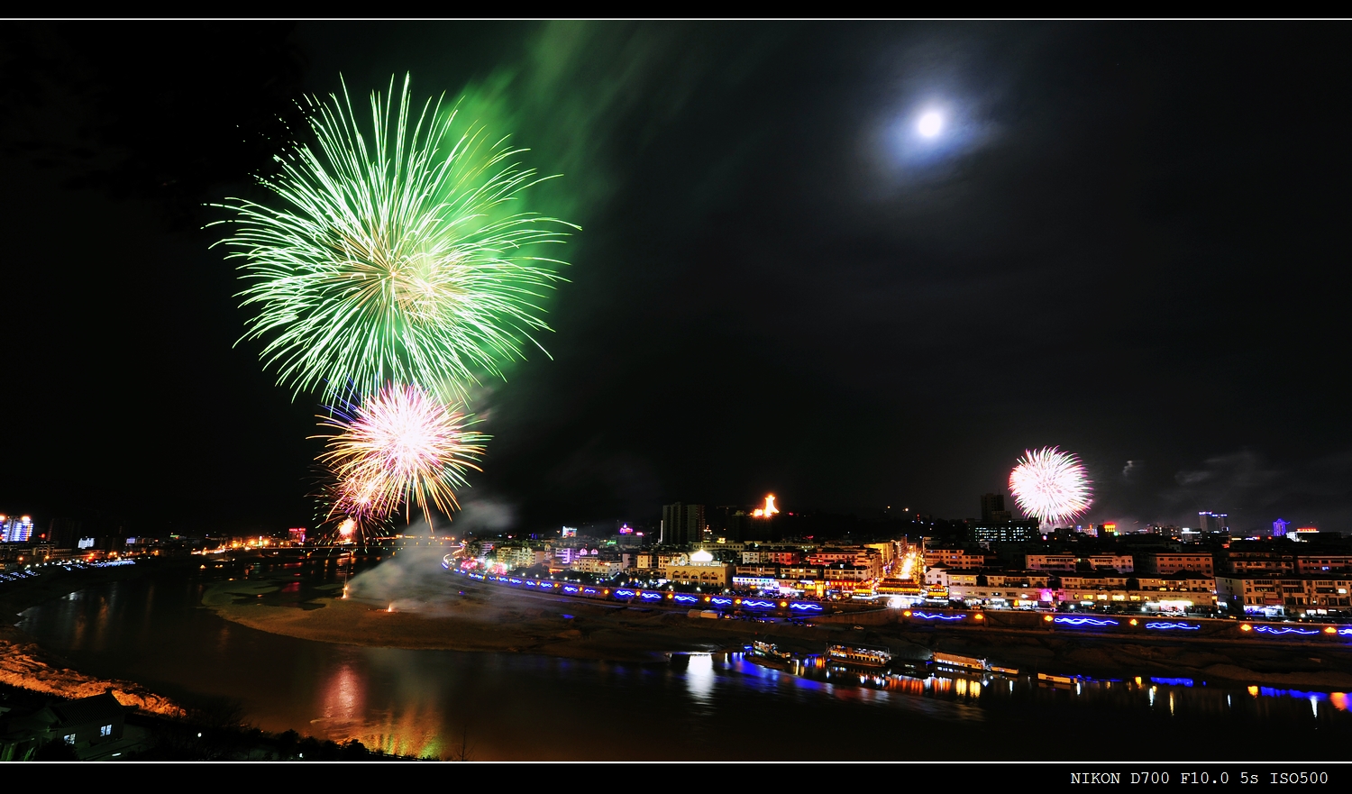 晚8时,五彩缤纷的焰火腾空而起。绚丽多姿的焰火伴随着音乐变化,声、光、乐融为一体,让市民享受了一道美轮美奂的听觉和视觉盛宴。焰火晚会共分《序•龙年畅想》和《金龙献瑞》、《硕果飘香》、《春满嘉陵江》、《腾飞吧广元》四个篇章,表达了广元人民热情迎接龙年的喜悦心情,展示了广元市自然风光与园林城市建设的山水风貌,展现了广元人民和谐幸福的生活美景,象征着信心百倍的广元人正在展望充满机遇与挑战的未来,构建和谐社会、创建文明城市的勃勃生机和崭新风貌。