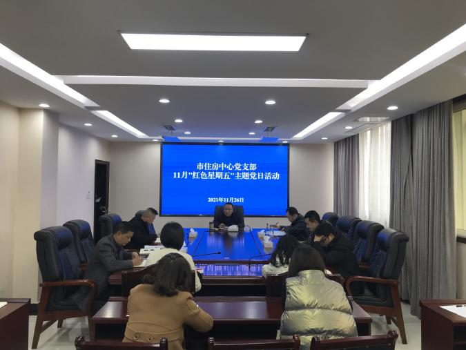 11月26日,市住房中心党支部在局四楼会议室召开十一月主题党日活动。支部书记饶必胜同志主持会议。