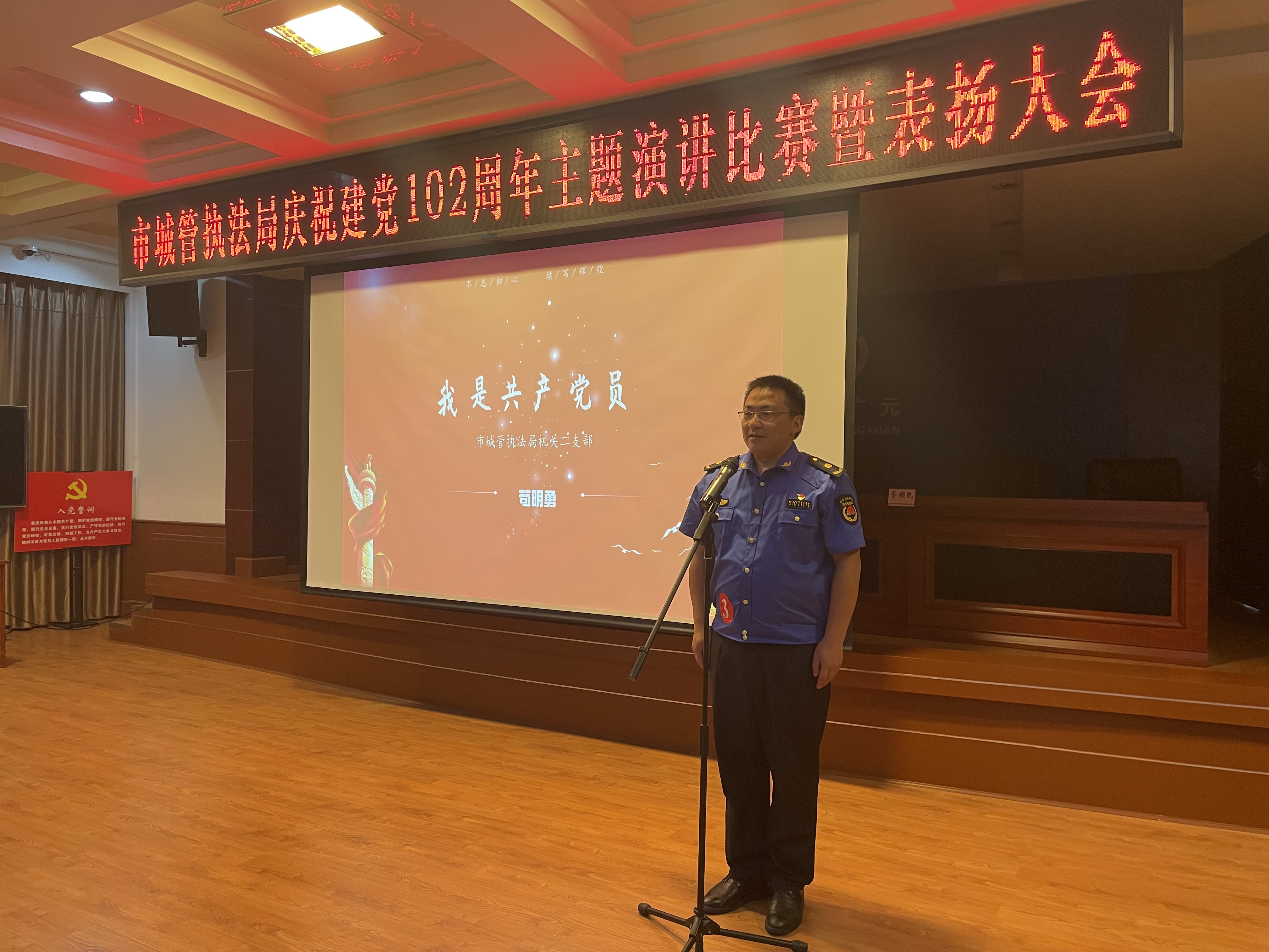 6月29日,市城管执法局举办庆祝建党102周年表扬大会,通报表扬了16名优秀共产党员、8名优秀党务工作者,激励基层党组织和广大党员学优看齐,以先进为榜样,立足本职,拼搏进取,坚决做到“崇法善治、服务人民”。