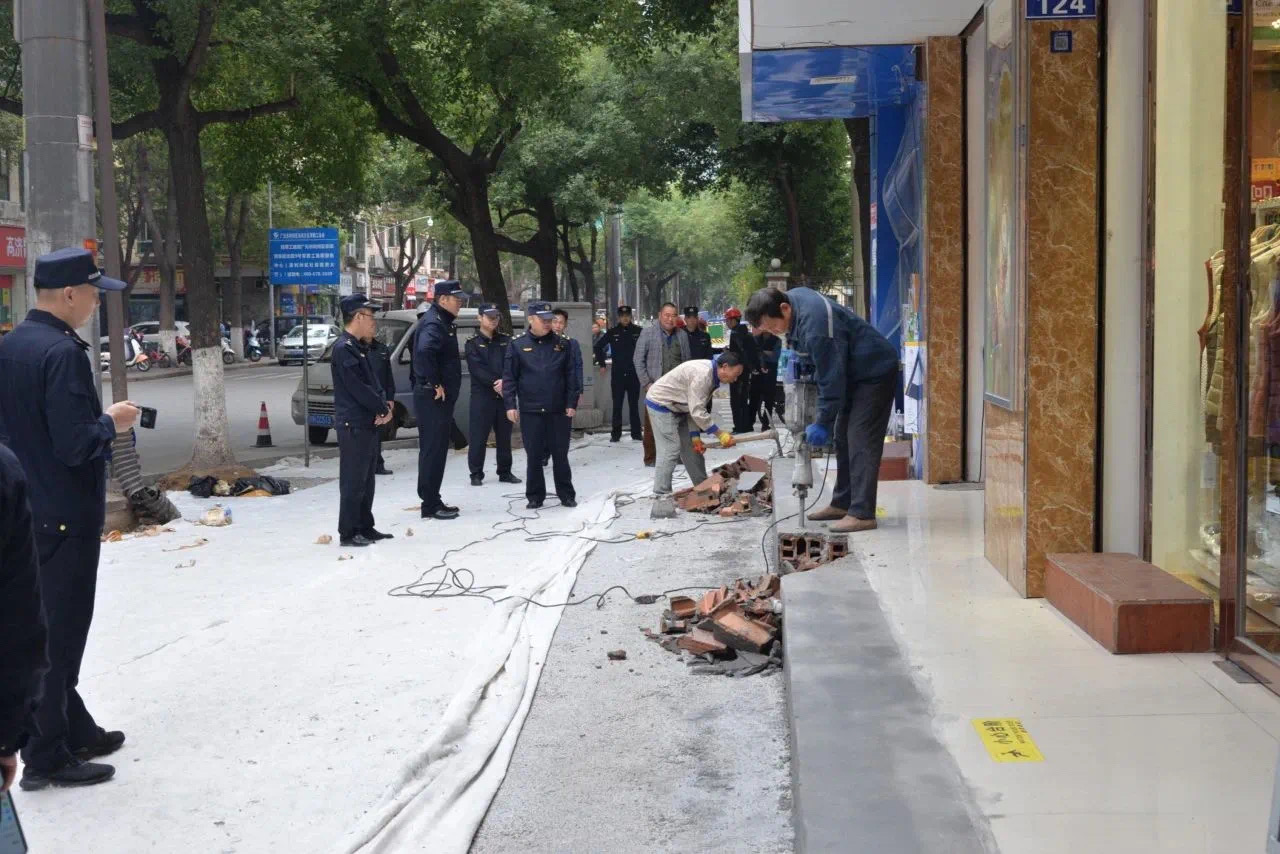 11月1日,东坝大队联合利州区综合行政执法局依法拆除该处6家商户门前擅自搭建的违法台阶30余米,进一步释放城市道路资源,还路于民,方便群众出行。