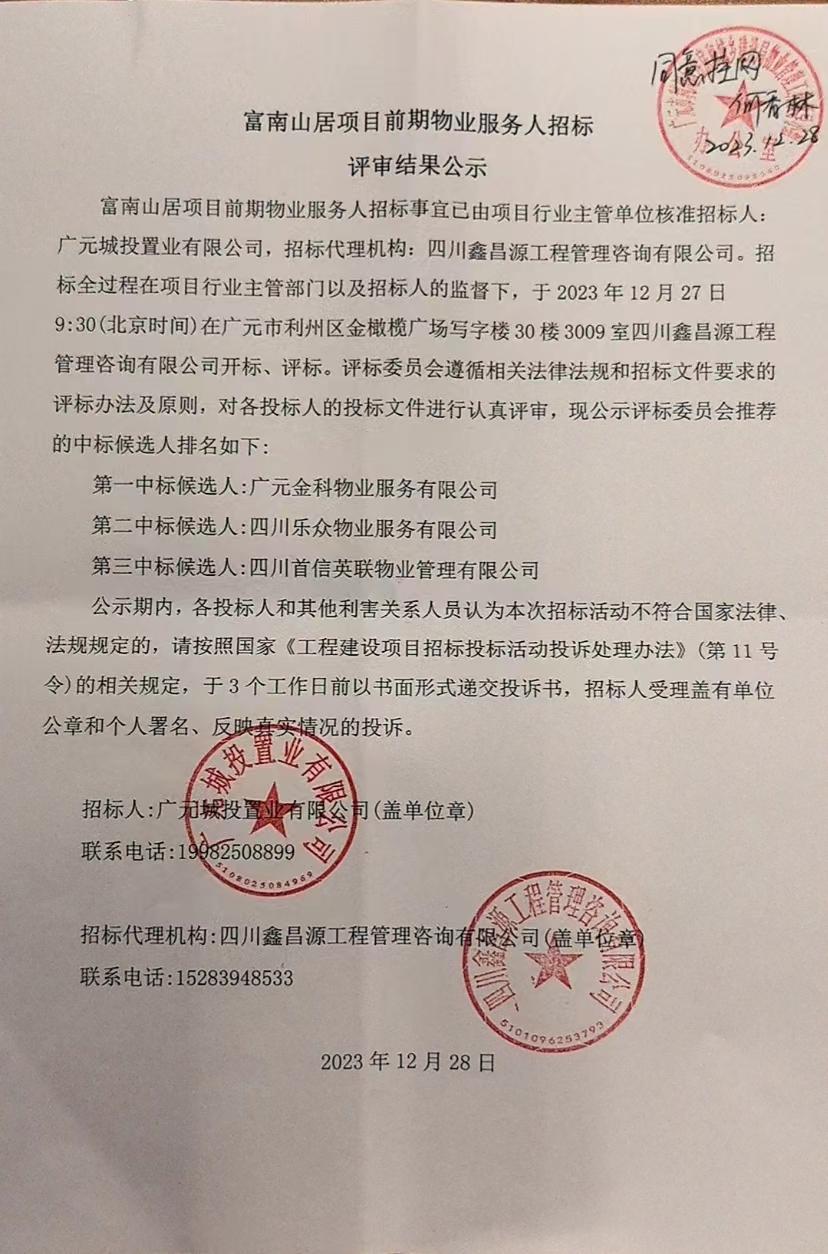 首页> 富南山居项目前期物业服务人招标评审结果公示