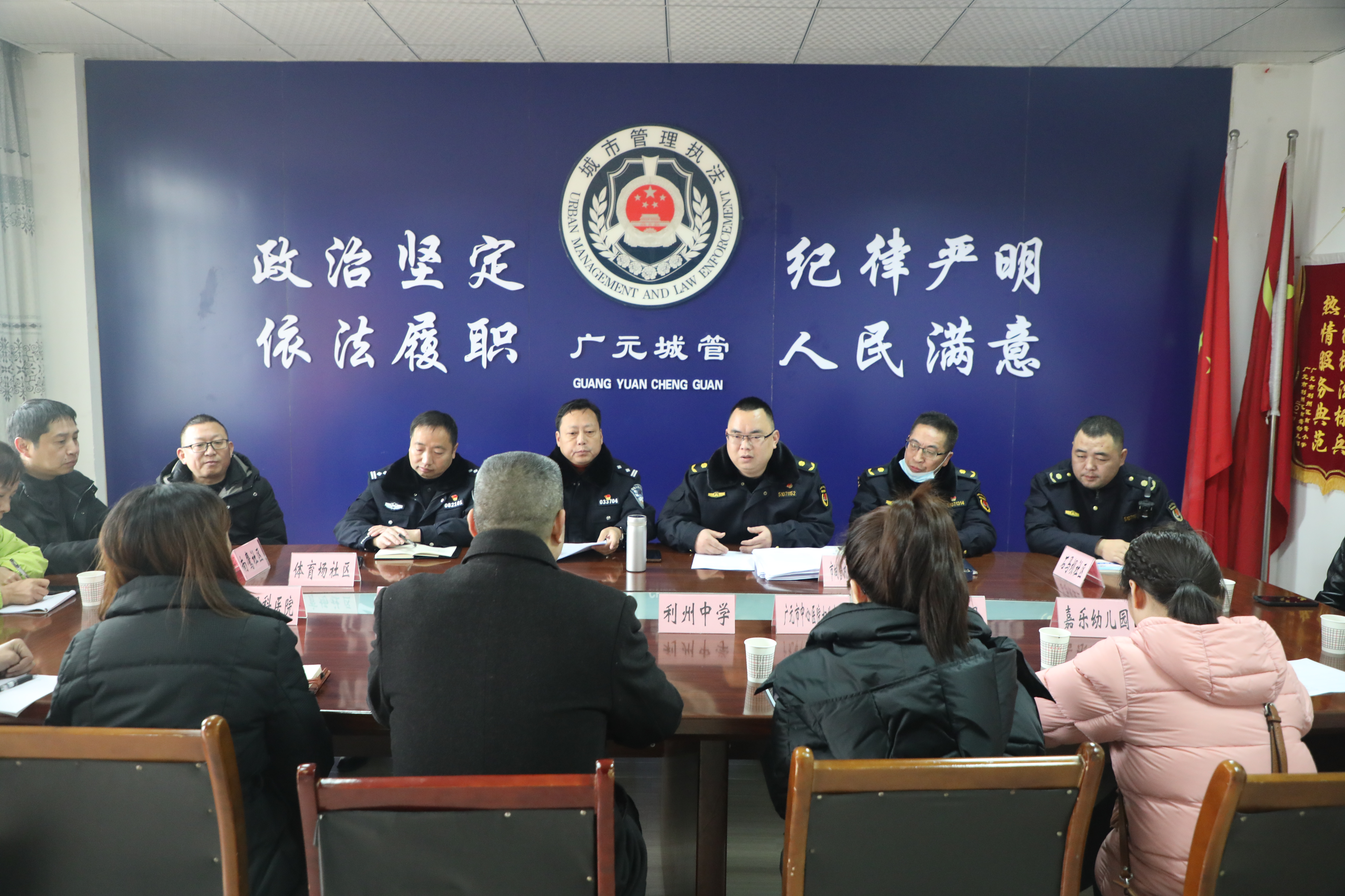 1月12日上午,南河大队组织辖区市中心医院妇儿分院、万江眼科医院、湘康医院3家医院,利州中学、南鹰小学、等6家学校,以及接官亭社区、体育场社区等5个社区共14家单位,开展城管进校园、进社区共建共治协议集中签约仪式。