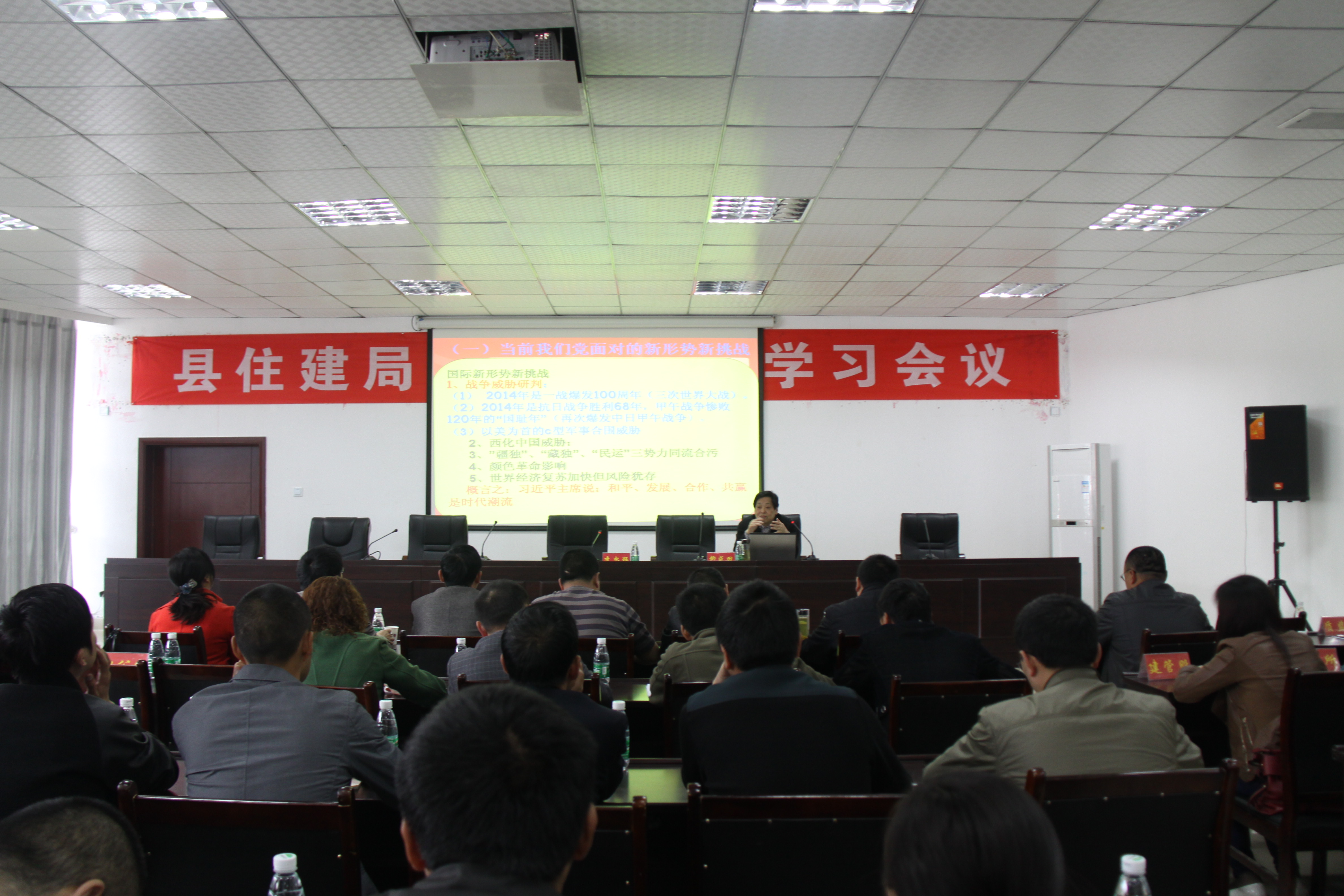 4月3日,县住建局在财经大厦召开党组中心组第一季度学习会,会议邀请了县委党校高级讲师柳成田作了《群众路线是党的生命线和根本工作路线》的辅导报告,局全体干部职工参加会议。
