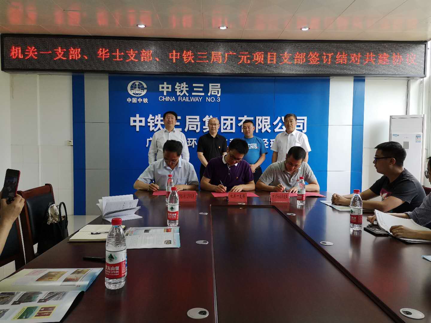在随后的座谈会上,局机关第一党支部与华士公司党支部、中铁三局西二环项目党支部全体党员开展重温入党誓词活动,并举行了党建结对共建交流启动仪式,三方党支部共同签订“党建结对共建协议书”,约定三方党组织资源共享、优势互补、共同提高的基层党建工作新格局。
