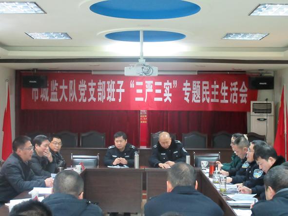 1月12日,市城监大队支部班子召开“三严三实”专题民主生活会,局党组成员、副局长陈云刚,局直属机关党委办主任梁国泰,局直属机关党委委员、招标办主任唐永明等到会进行了指导。大队支部班子成员、中层干部参加了会议。会议由大队支部书记陈君同志主持。