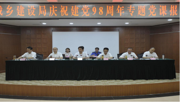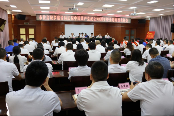 7月1日,市住房和城乡建设局召开庆祝中国共产党成立98周年暨先进典型表扬会,党组书记、局长李昱隆出席会议并作专题党课报告,党组成员、直属机关党委书记史华林主持会议。
