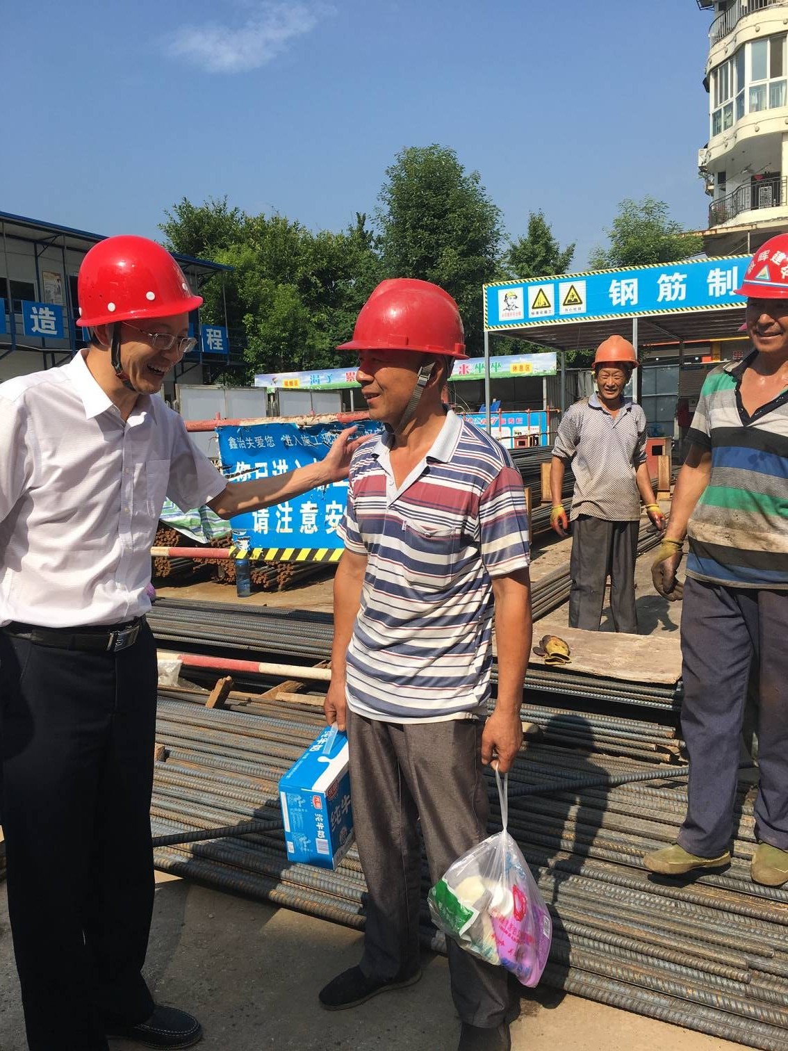 何主席一行为300名建筑工人送去了牛奶、毛巾、洗衣液、藿香正气液、夏桑菊颗粒等防暑降温物品和饮品,并向承建单位负责人详细了解一线工人的作业环境、生产强度等情况,嘱咐大家要注意安全,做好防暑降温措施,合理安排作息时间,并要求现场企业负责人要保障广大建筑工人的生命安全和身体健康,帮助他们安全度夏、清凉度夏。