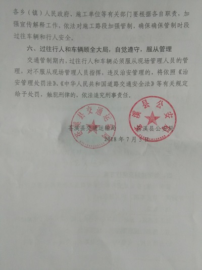 关于苍溪县省道喻马路鸳溪到五龙段实行交通管制的通告