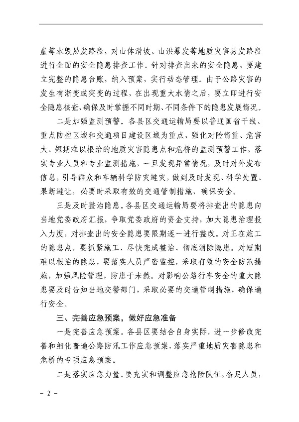 广元市交通运输局关于做好2019年全市普通公路防汛工作的通知