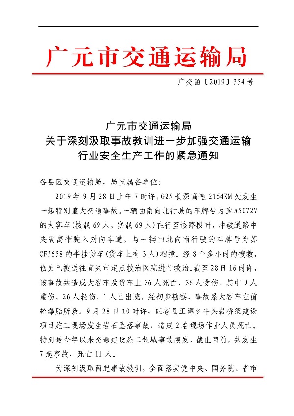 关于深刻汲取事故教训进一步加强交通运输行业安全生产工作的紧急通知