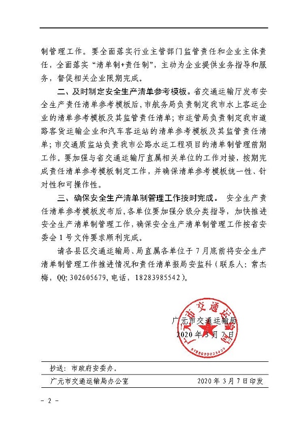 广元市交通运输局转发省安全生产委员会关于印发进一步推进安全生产清单制管理工作方案的通知