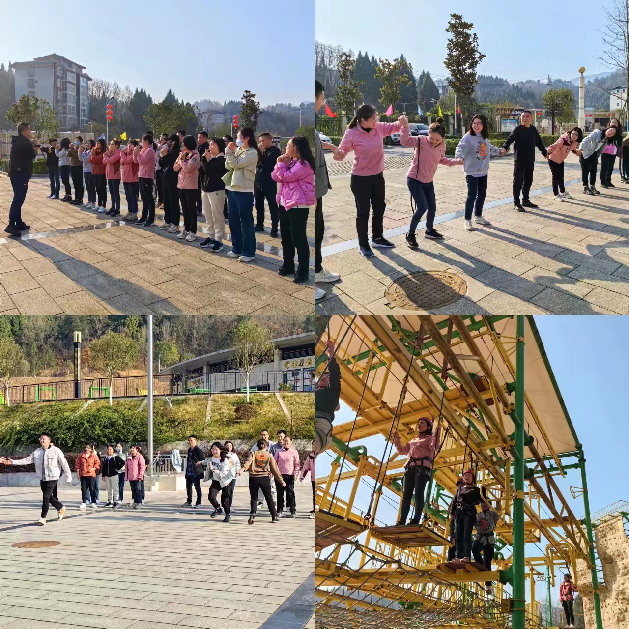 户外拓展环节,干部职工们分为两组开展了齐心掌、翻纸牌、一圈到底、群龙取水、空中挑战等趣味竞技活动,提振干部精气神,培育团结协作、积极向上的团队精神,进一步增强凝聚力和战斗力。