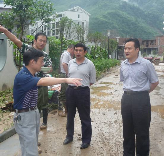 (青川县民政局局长袁余先向赵建平局长汇报灾情及受灾群众紧急安置情况)